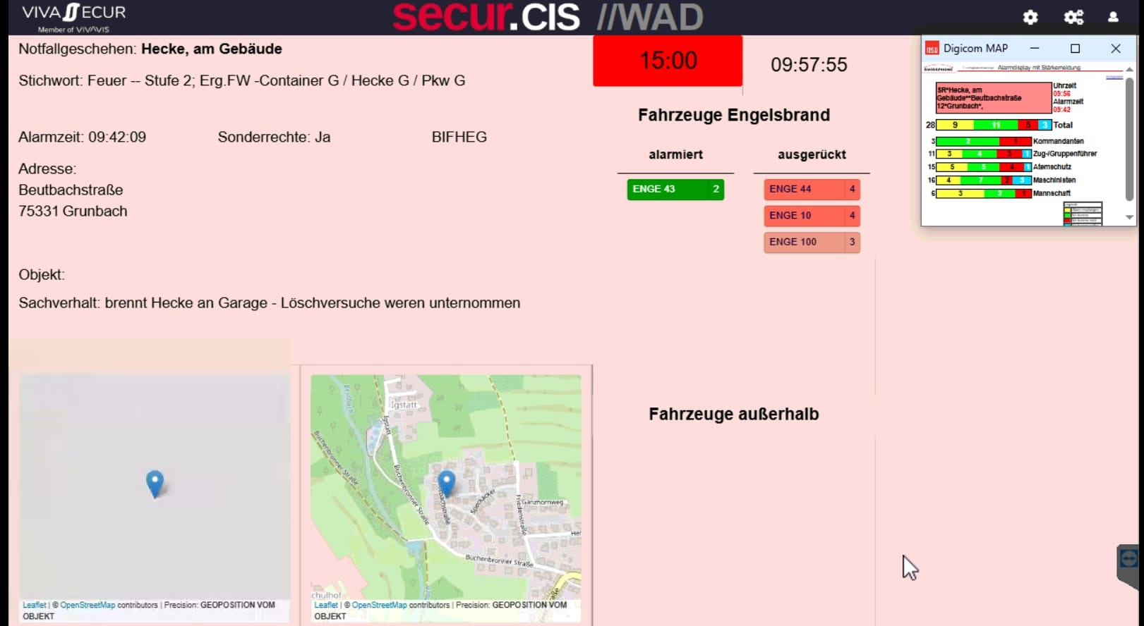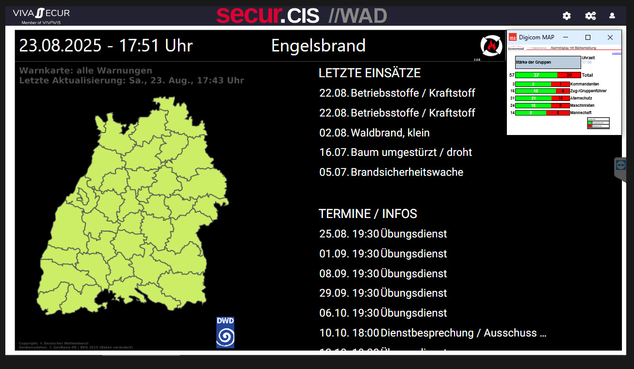 Über Vivasecur sind wir direkt mit der ILS Pforzheim verbunden und erhalten alle Einsatzrelevanten Informationen auf unser Wachenalarmdisplay.