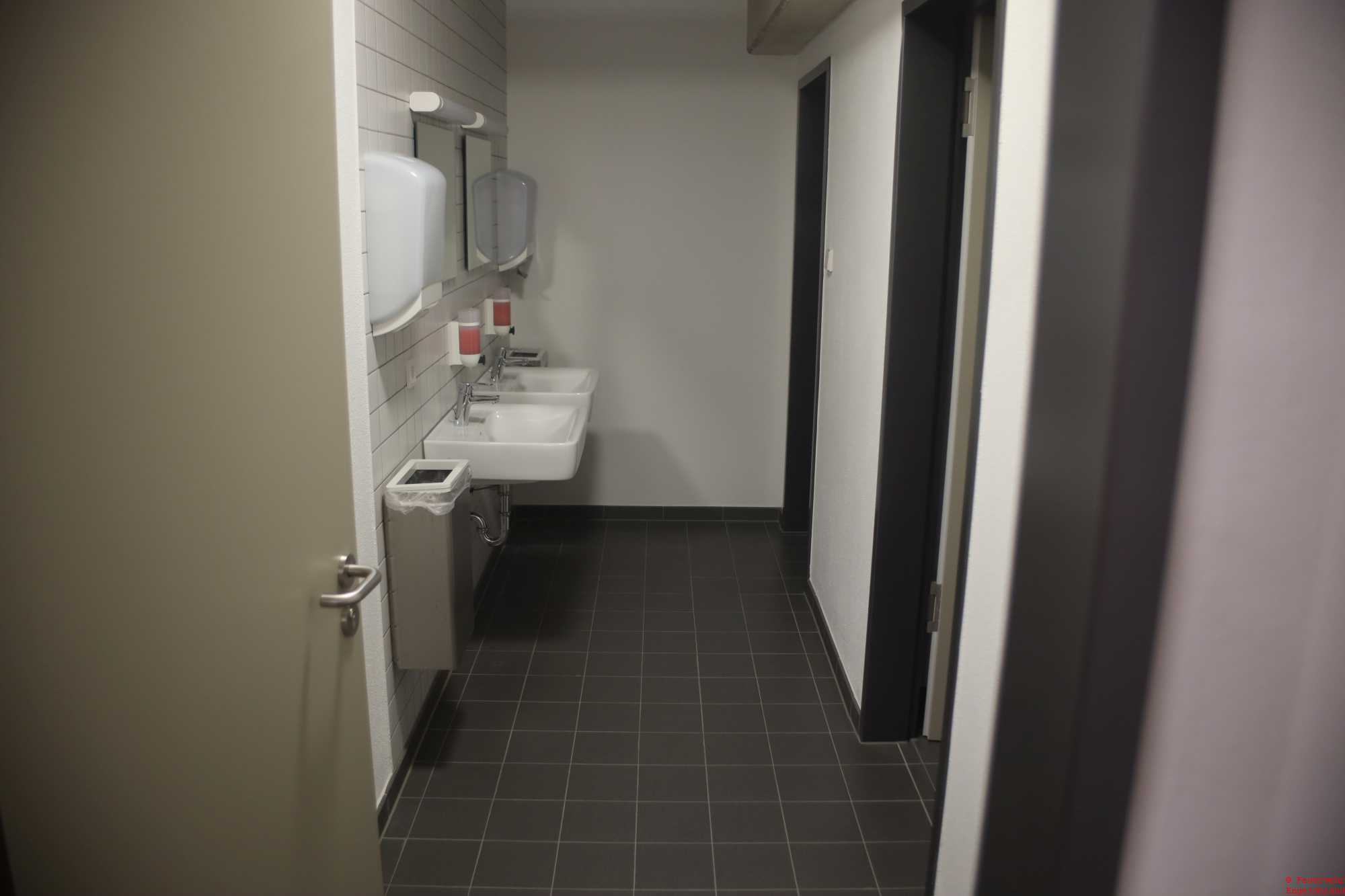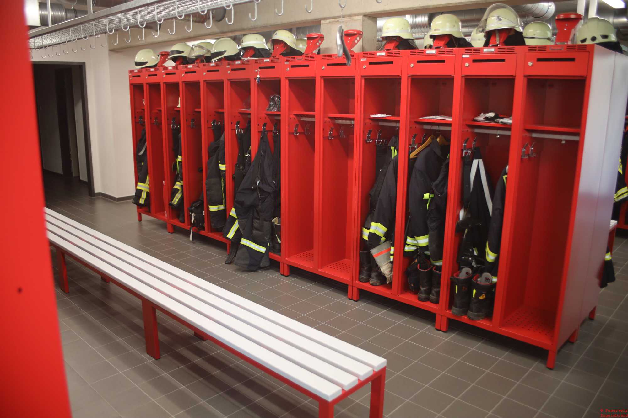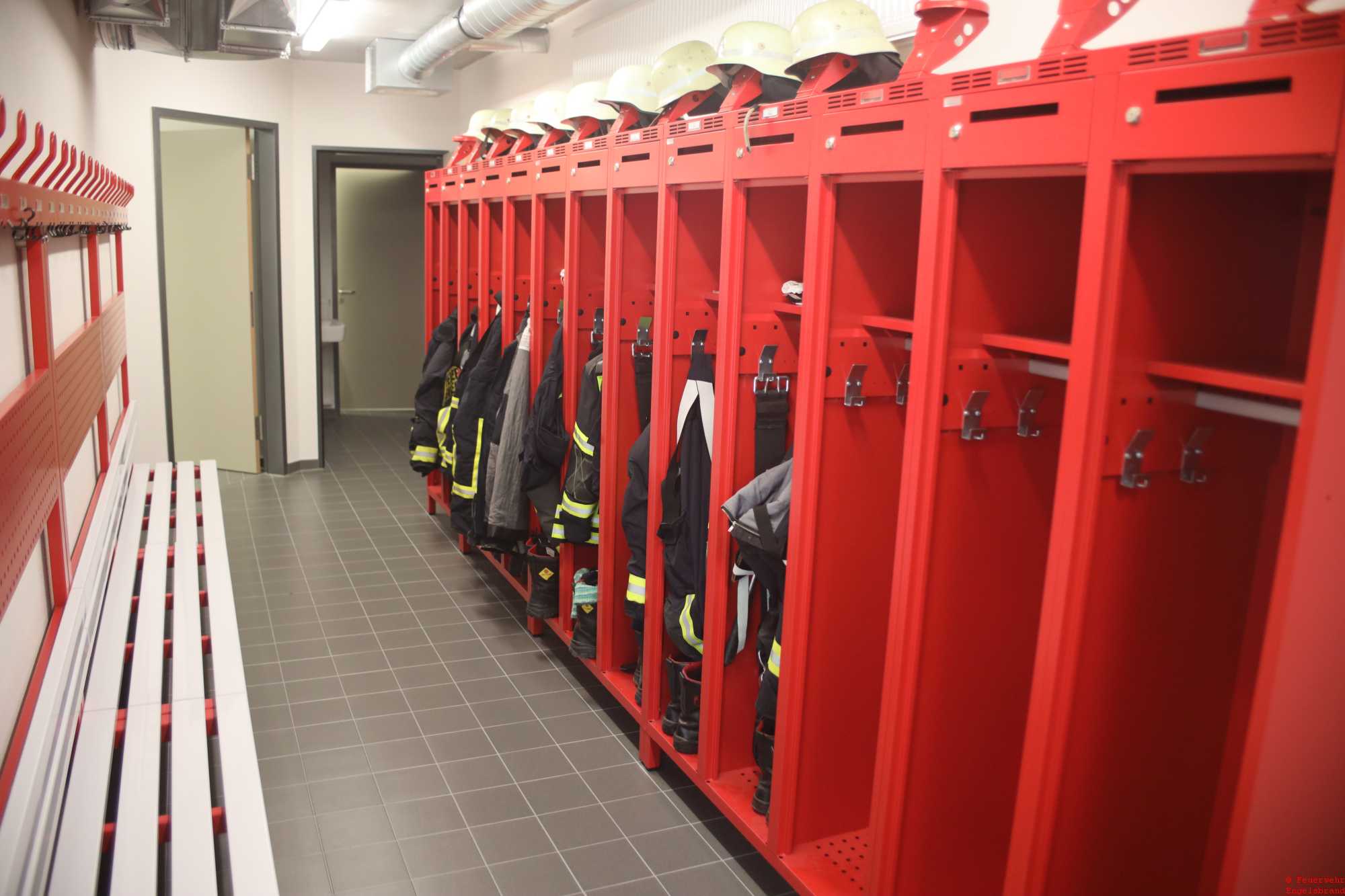 Im Erdgeschoss des Verwaltungstraktes befinden sich die Spind Räume getrennt für Frauen und Männer, dazu jeweils Sanitärräume mit Dusche und WC, Lagezentrum mit Funkraum, Teeküche, Behinderten WC sowie die Haustechnik.