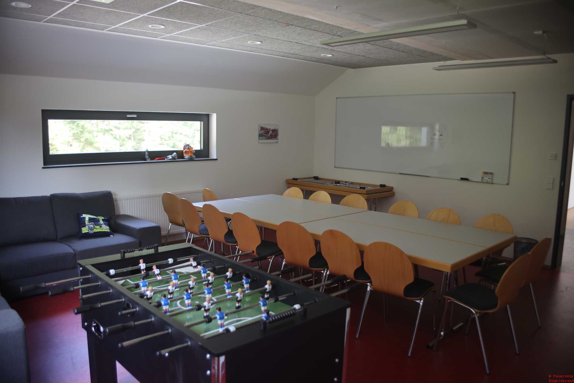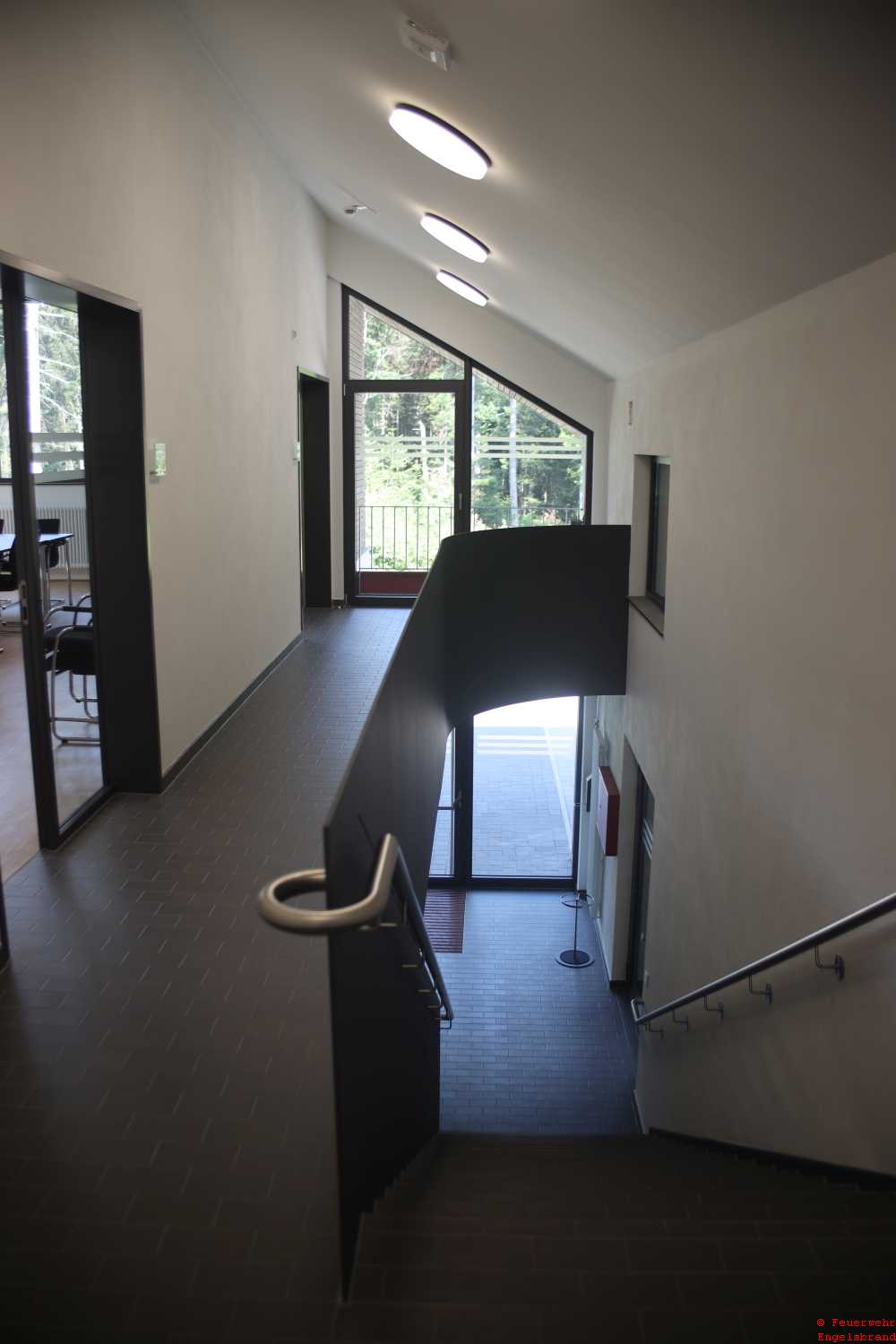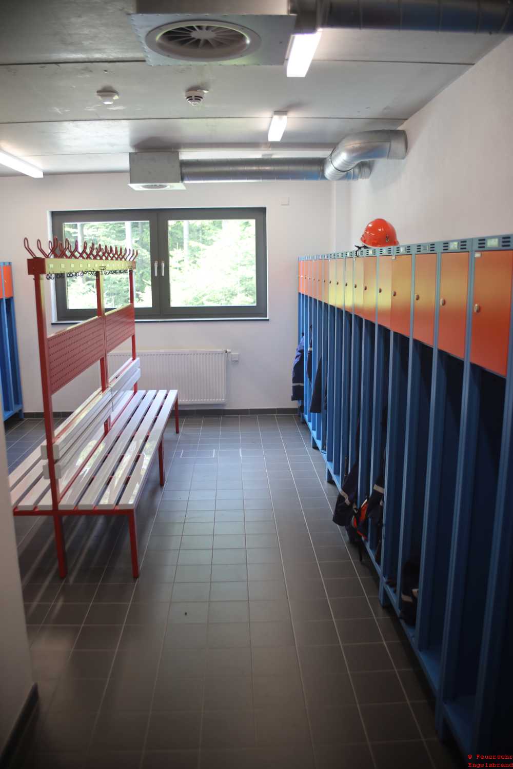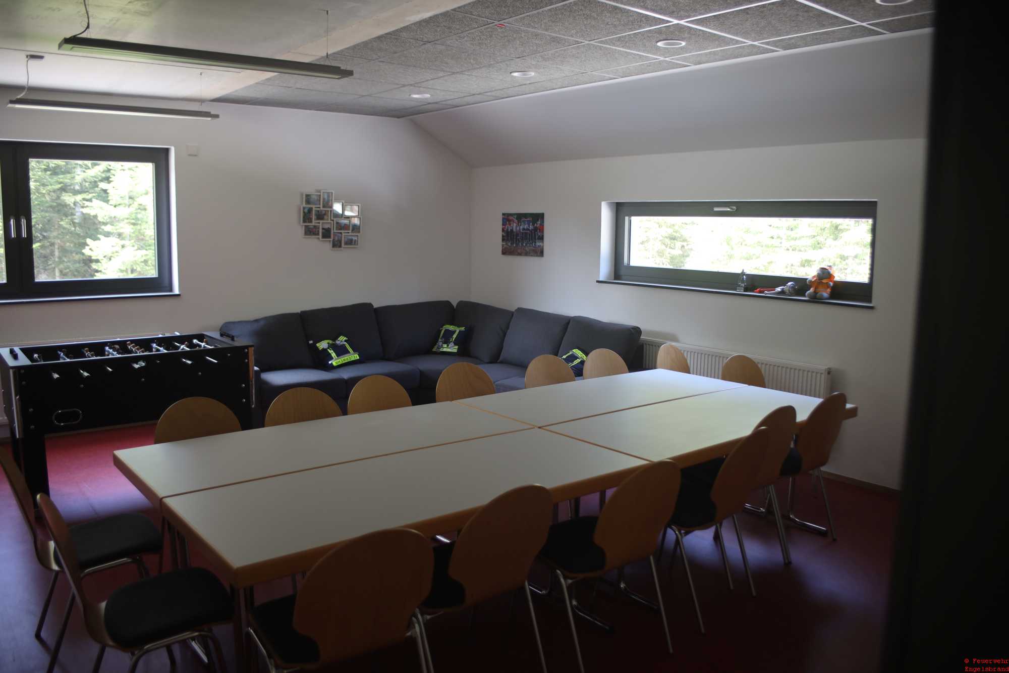 Im ersten Obergeschoss findet man den Schulungsraum mit angrenzender Küche, Toiletten. Sowie den Jugendraum mit angrenzenden Spind Räumen, getrennt für Mädchen und Jungs, der Jugendfeuerwehr.