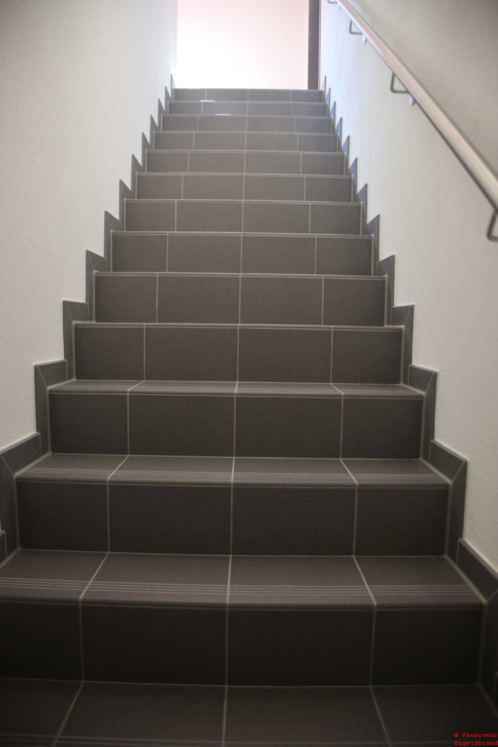 Über das Treppenhaus zwischen dem Verwaltungstrakt und der Fahrzeughalle gelangt man in das erste Obergeschoß.